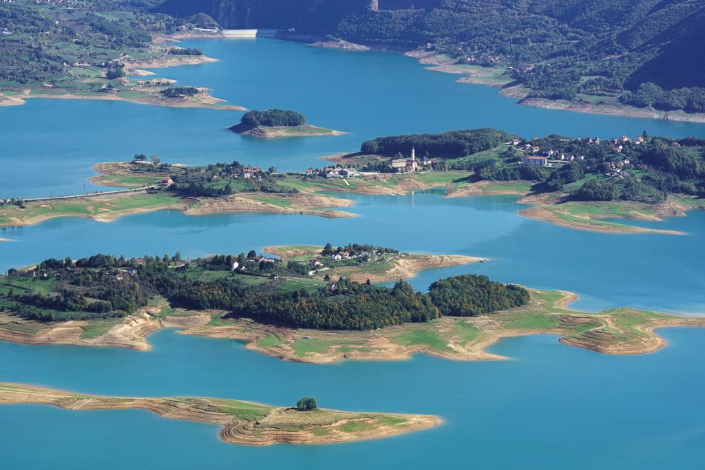 Lake Rama is an artificial, reservoir lake created by damming the Rama River in 1968. Twenty settlements were flooded and around 3000 people were displaced. The lake has been listed several times as one of the most beautiful lakes in Europe.